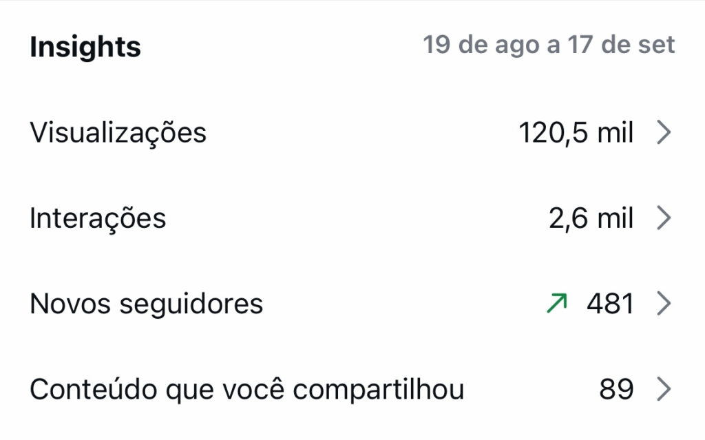 de meus conteúdos no período de 1 mês