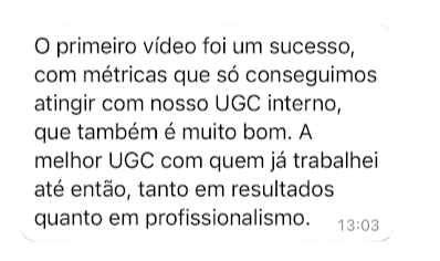 Antes de atuar com UGC, passei por diferentes áreas do marketing, incluindo gestão de tráfego, o que despertou ainda mais meu olhar para criar conteúdos estratégicos, focados em anúncios que geram resultado. Tenho forte visão criativa, domínio de ganchos e estratégias de conversão.